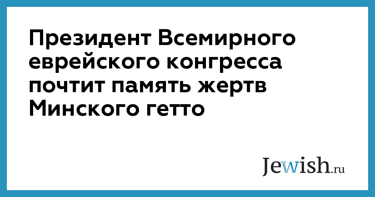 Президент Всемирного еврейского конгресса почтит память жертв Минского гетто