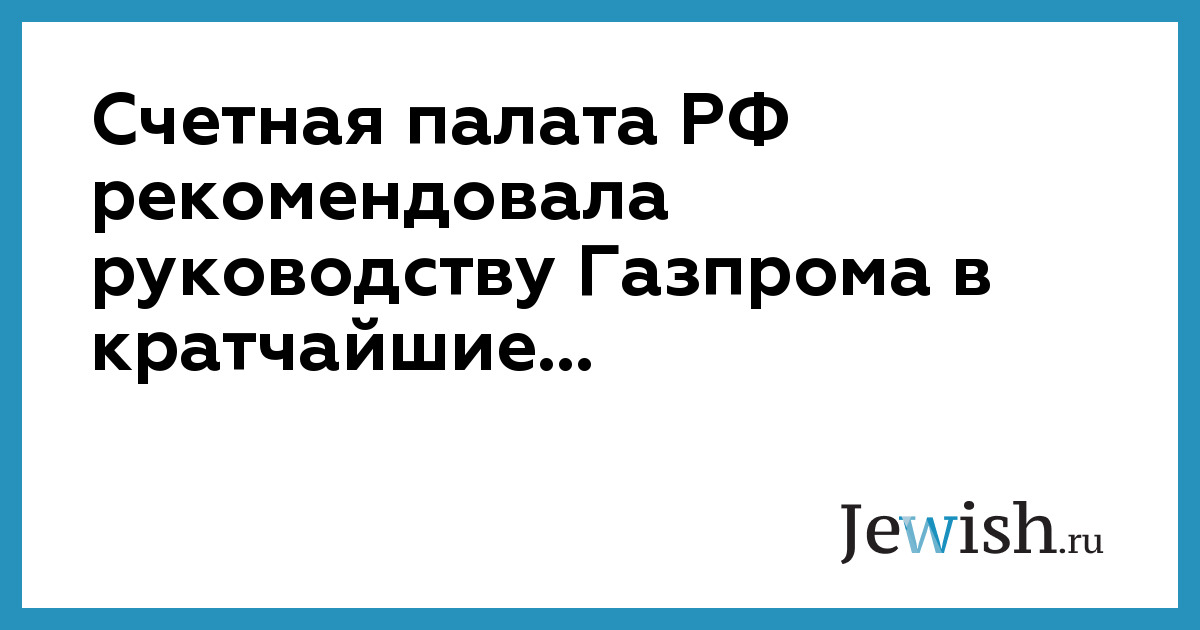 Счетная палата РФ рекомендовала руководству Газпрома в кратчайшие...