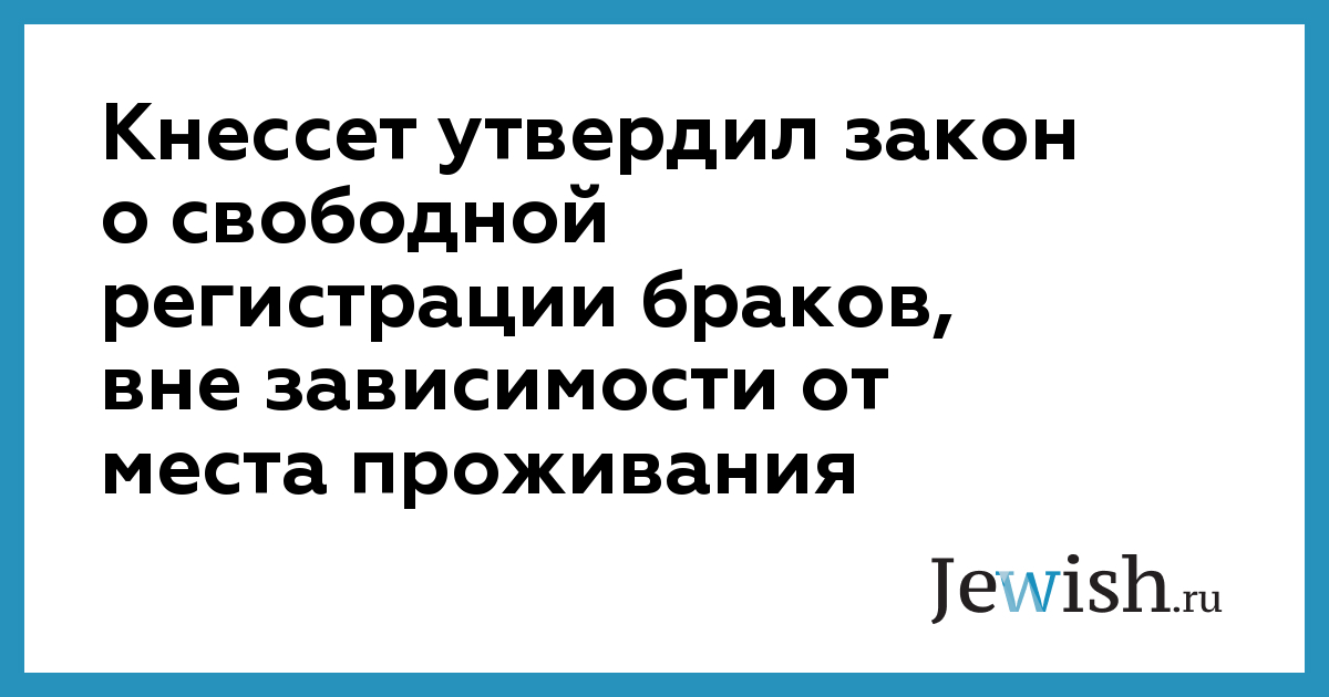До сегодняшнего дня, пара, решившая вступить в брак, могла его зарегистрировать только в городе одного из будущих супругов. В соответствии с новым законом, это ограничение снимается. Закон позволяет парам из любого населенного пункта страны выбирать любой раввинат для регистрации брака.