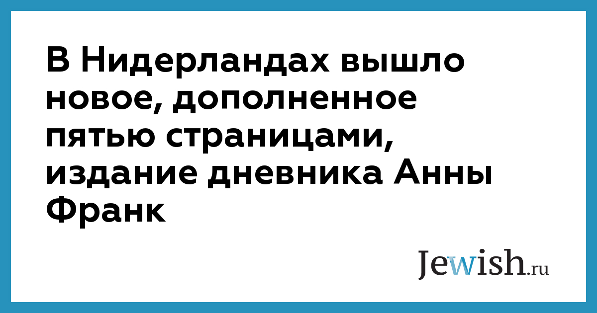 В Нидерландах вышло новое, дополненное пятью страницами, издание дневника Анны Франк