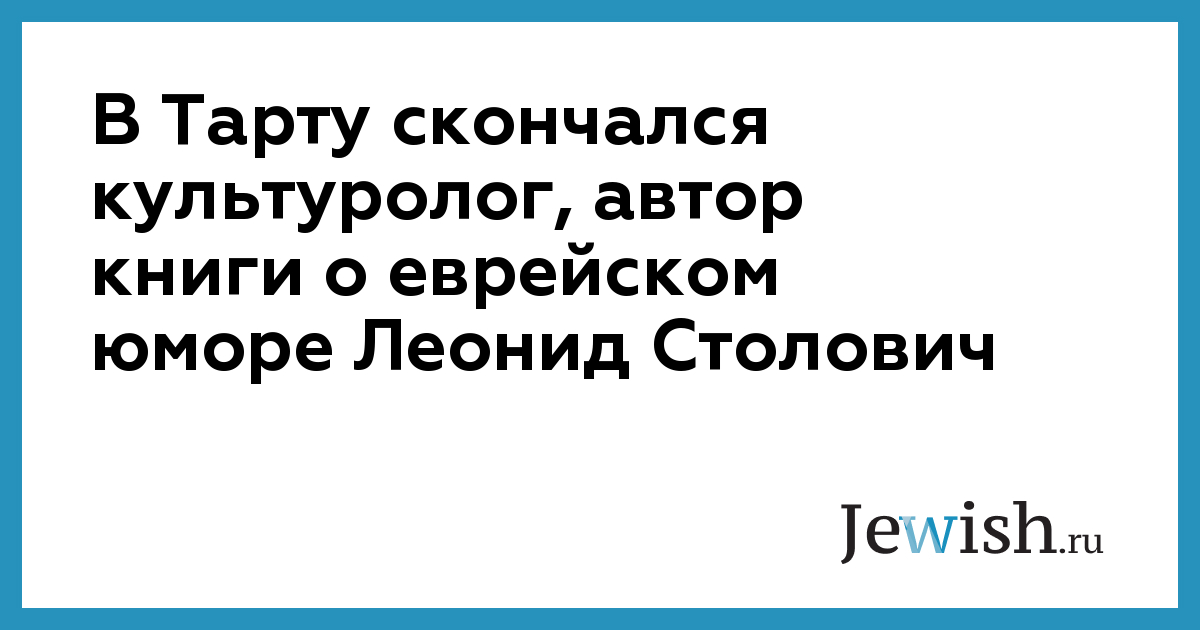 В Тарту скончался культуролог, автор книги о еврейском юморе Леонид Столович