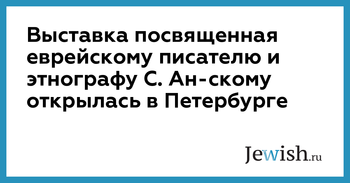 Выставка посвященная еврейскому писателю и этнографу С. Ан-скому открылась в Петербурге