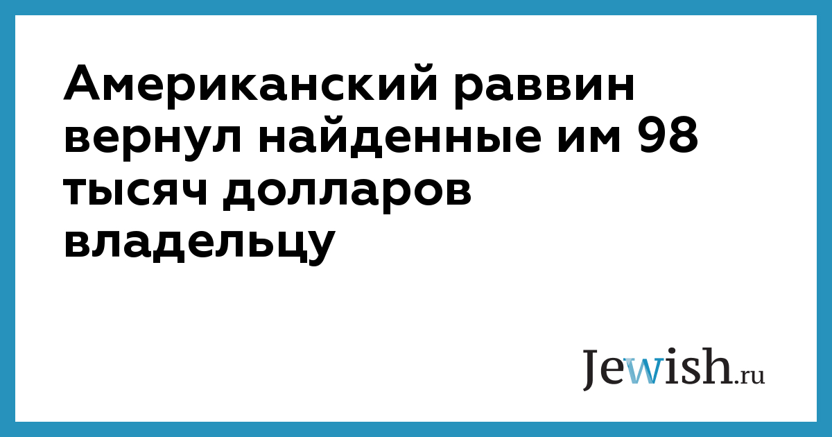 Американский раввин вернул найденные им 98 тысяч долларов владельцу