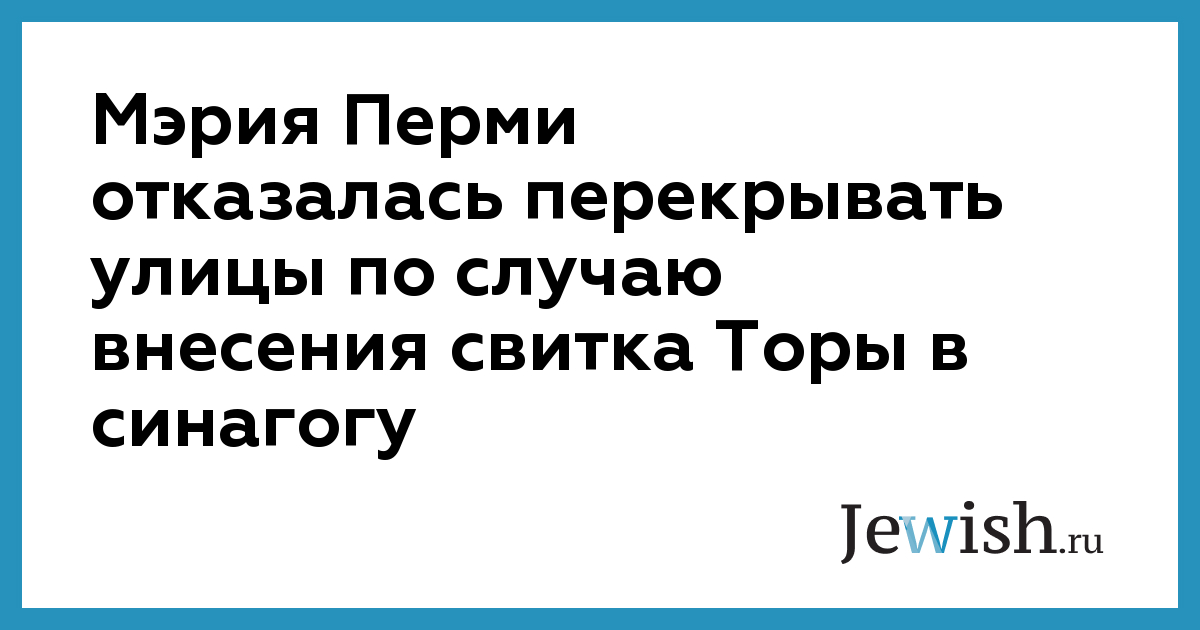 Мэрия Перми отказалась перекрывать улицы по случаю внесения свитка Торы в синагогу