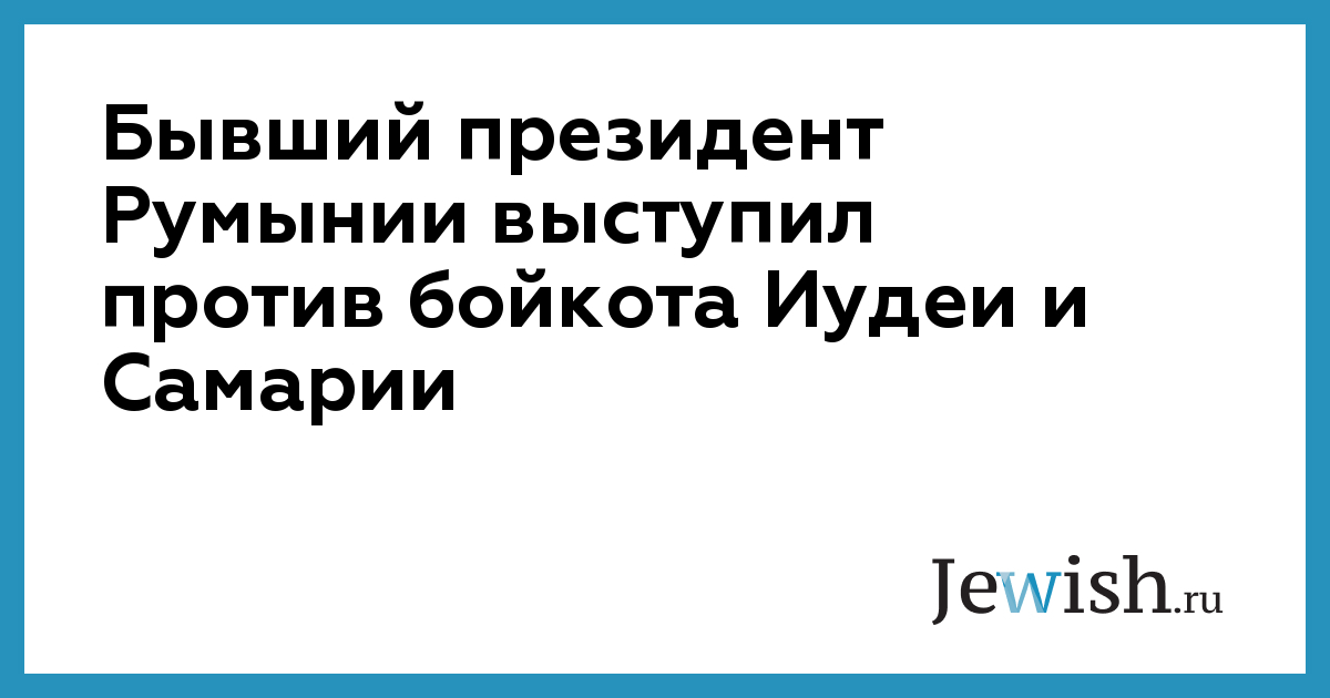 Бывший президент Румынии выступил против бойкота Иудеи и Самарии