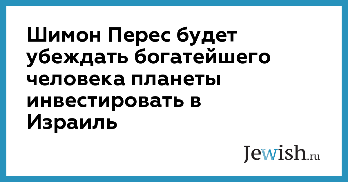 Шимон Перес будет убеждать богатейшего человека планеты инвестировать в Израиль