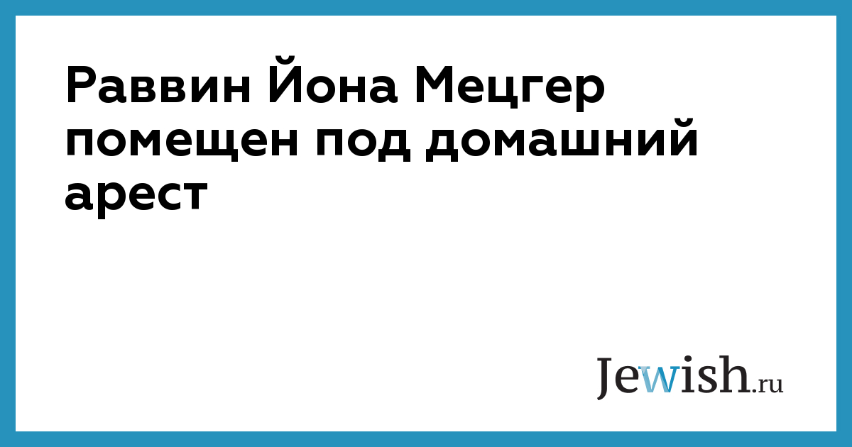 Раввин Йона Мецгер помещен под домашний арест