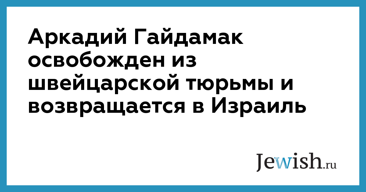 Аркадий Гайдамак освобожден из швейцарской тюрьмы и возвращается в Израиль