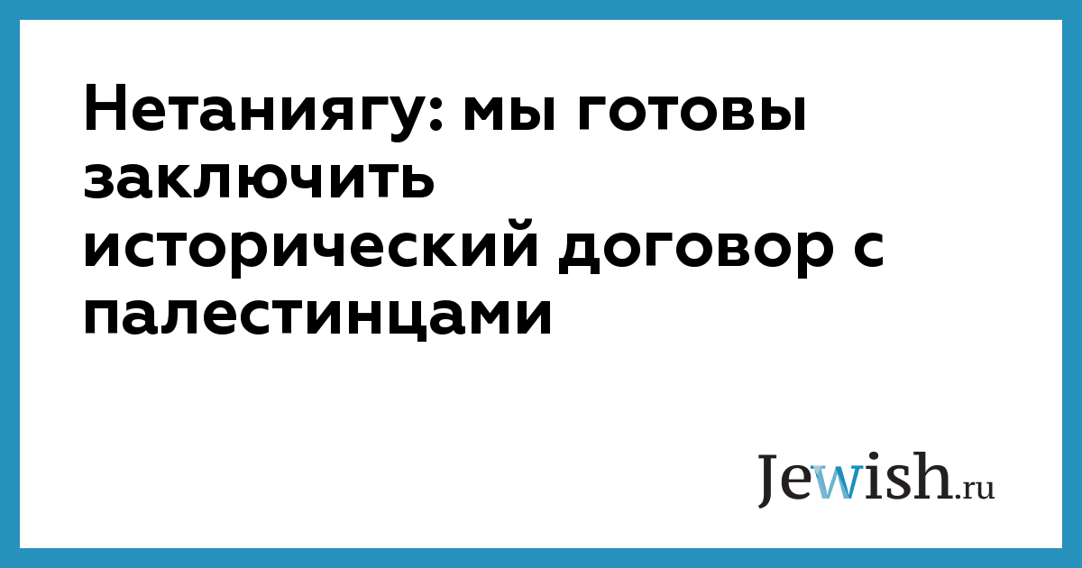 Нетаниягу: мы готовы заключить исторический договор с палестинцами