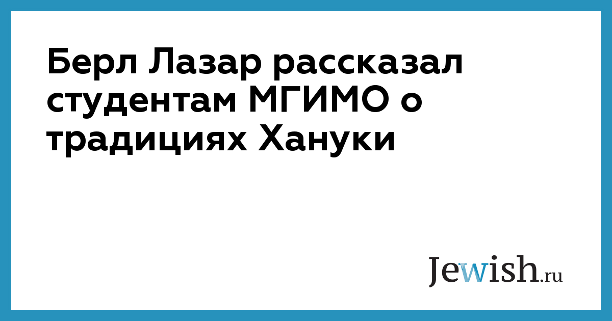 Берл Лазар рассказал студентам МГИМО о традициях Хануки