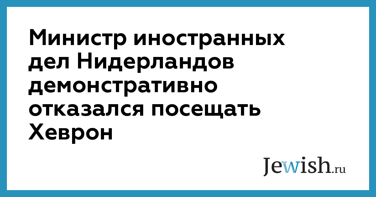 Министр иностранных дел Нидерландов демонстративно отказался посещать Хеврон