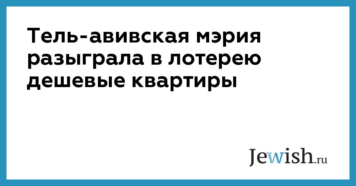 Тель-авивская мэрия разыграла в лотерею дешевые квартиры