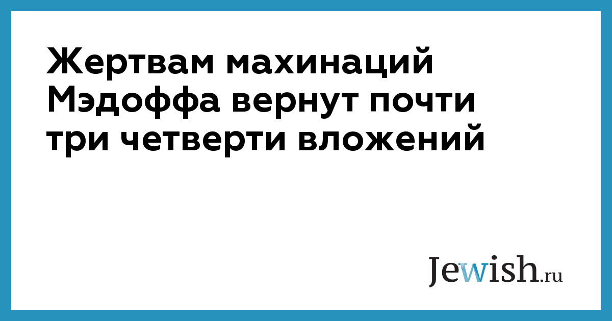 Прокуратура США собрала уже больше $2,3 млрд для выплаты пострадавшим от действий Б.Мэдоффа. При этом в спецфонде под руководством назначенного судом управляющего Ирвинга Пикарда набралось уже $9,5 млрд. С учетом выплаты JPMorgan общая сумма приблизится к $13 млрд, то есть составит около 74% от ущерба вкладчикам, составившего $17,5 млрд.