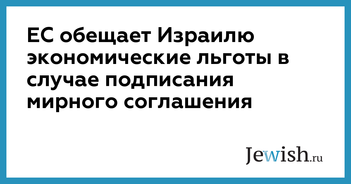 ЕС обещает Израилю экономические льготы в случае подписания мирного соглашения