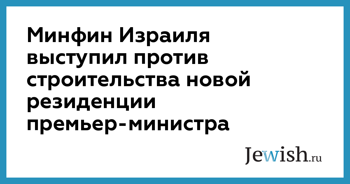 Минфин Израиля выступил против строительства новой резиденции премьер-министра
