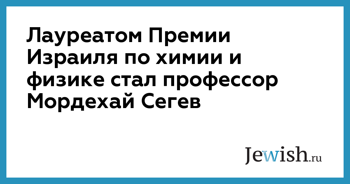 Лауреатом Премии Израиля по химии и физике стал профессор Мордехай Сегев