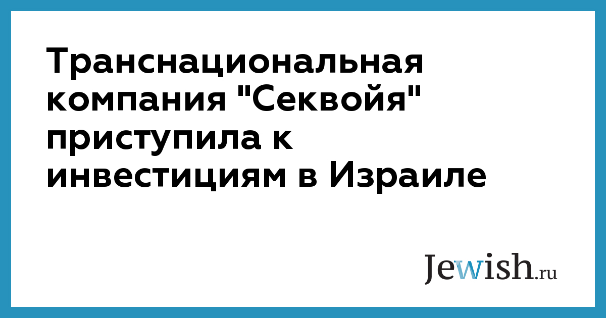 Транснациональная компания "Секвойя" приступила к инвестициям в Израиле