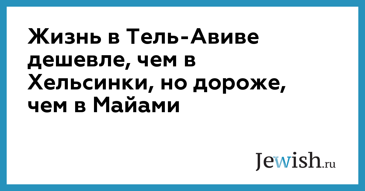 Жизнь в Тель-Авиве дешевле, чем в Хельсинки, но дороже, чем в Майами
