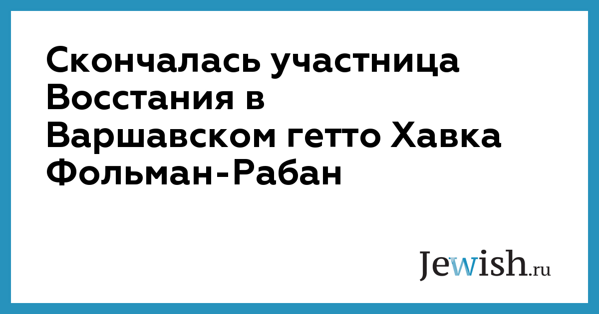 Скончалась участница Восстания в Варшавском гетто Хавка Фольман-Рабан