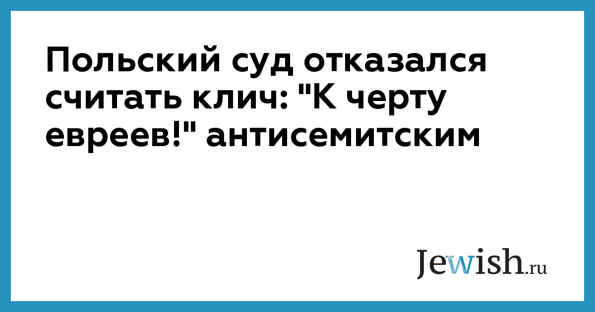 Польский суд отказался считать клич: "К черту евреев!" антисемитским