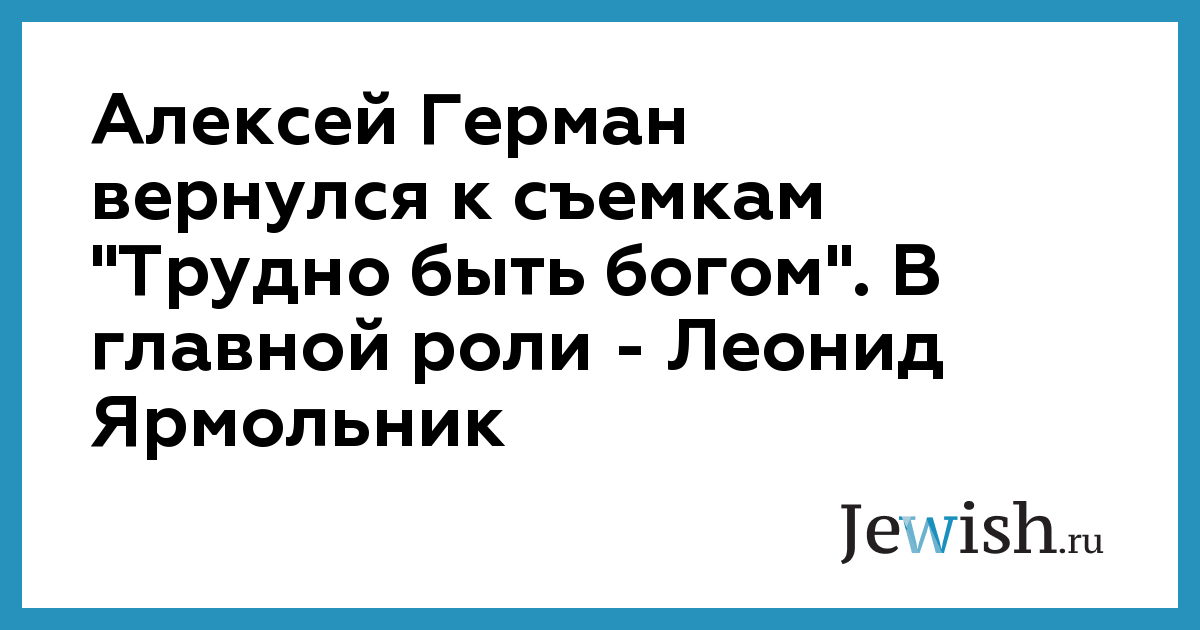 Алексей Герман вернулся к съемкам "Трудно быть богом". В главной роли — Леонид Ярмольник