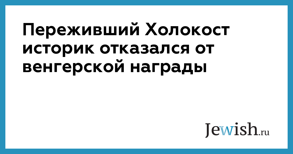 Переживший Холокост историк отказался от венгерской награды