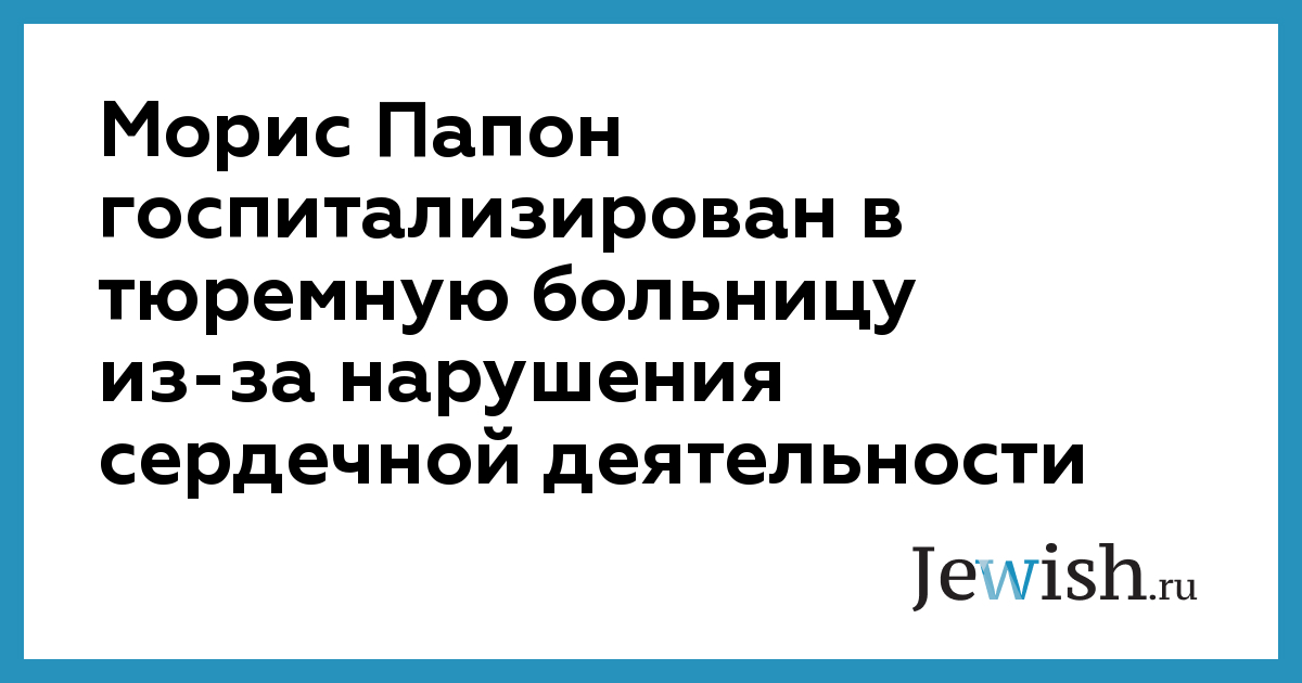 Морис Папон госпитализирован в тюремную больницу из-за нарушения сердечной деятельности