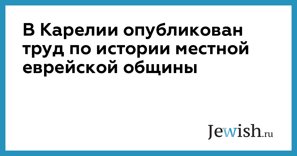 В Карелии опубликован труд по истории местной еврейской общины