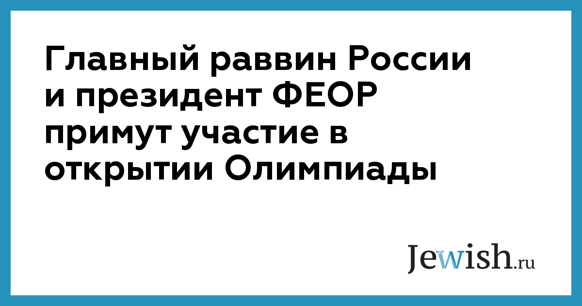Главный раввин России и президент ФЕОР примут участие в открытии Олимпиады