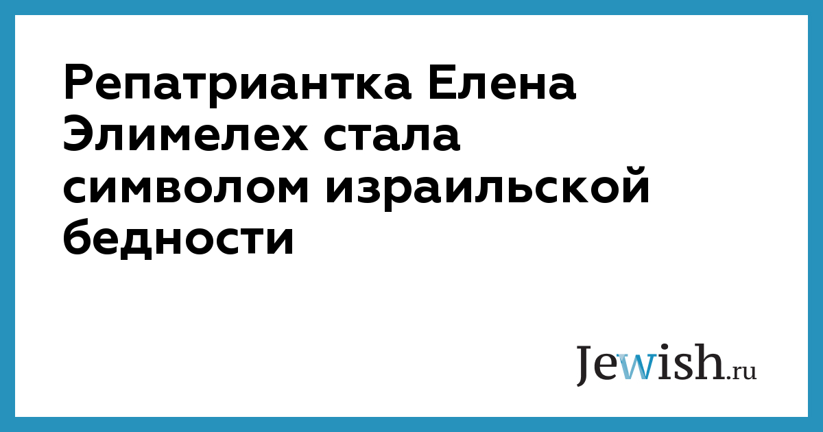 Репатриантка Елена Элимелех стала символом израильской бедности