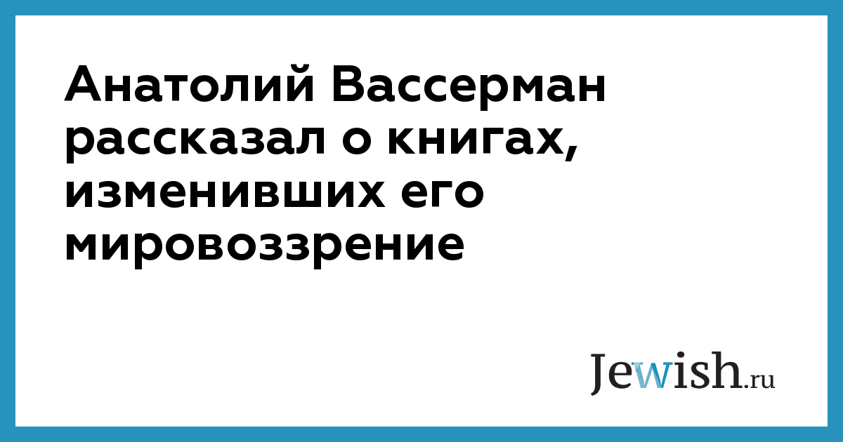 Анатолий Вассерман рассказал о книгах, изменивших его мировоззрение