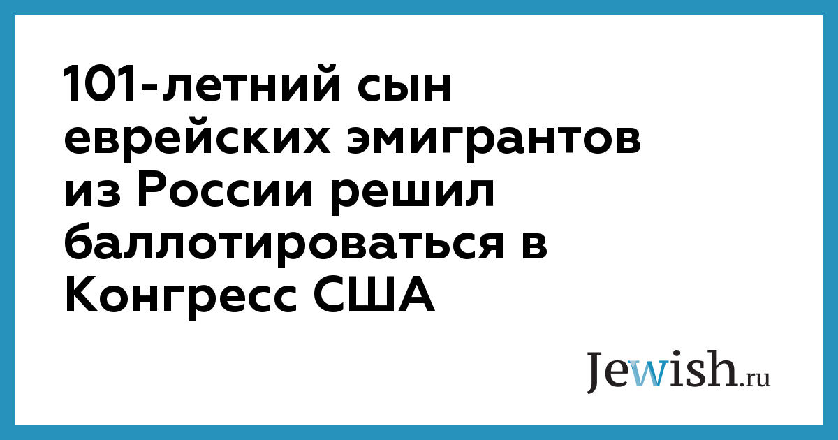 101-летний сын еврейских эмигрантов из России решил баллотироваться в Конгресс США