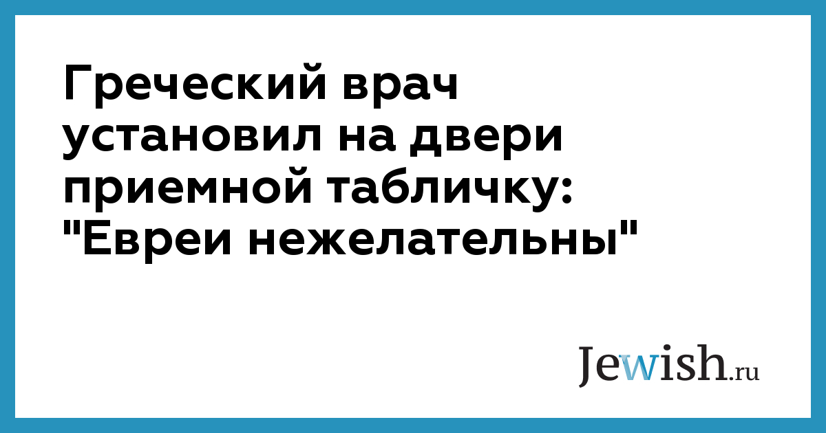 Греческий врач установил на двери приемной табличку: "Евреи нежелательны"