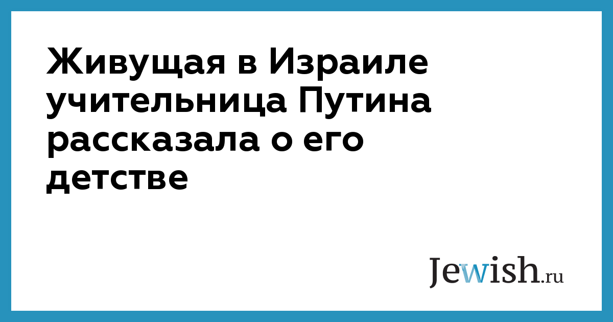 Живущая в Израиле учительница Путина рассказала о его детстве