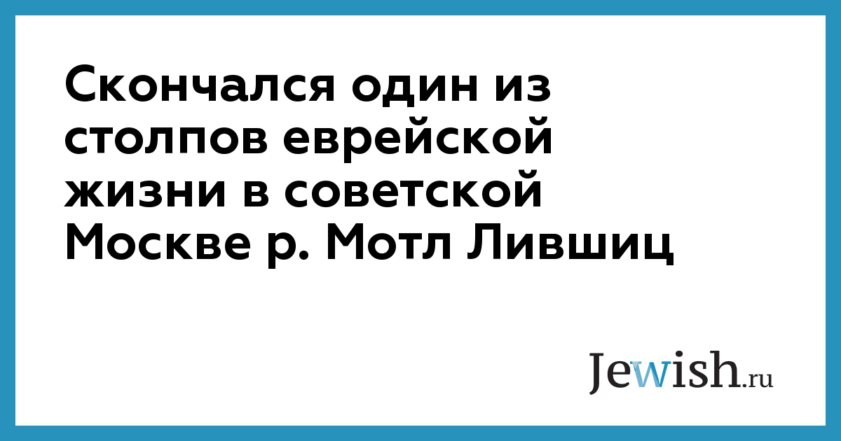 Скончался один из столпов еврейской жизни в советской Москве р. Мотл Лившиц