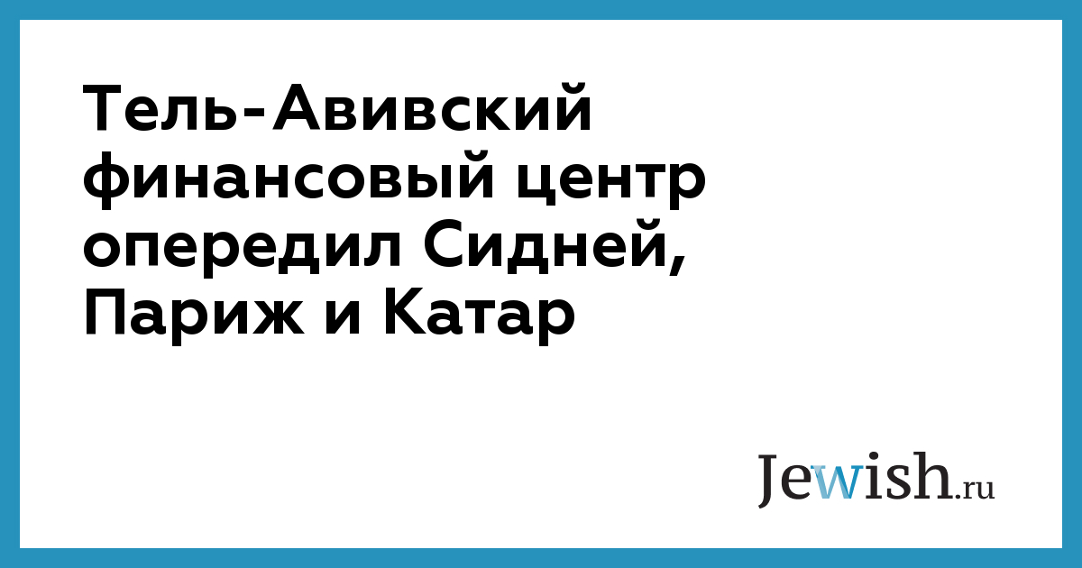 Тель-Авивский финансовый центр опередил Сидней, Париж и Катар