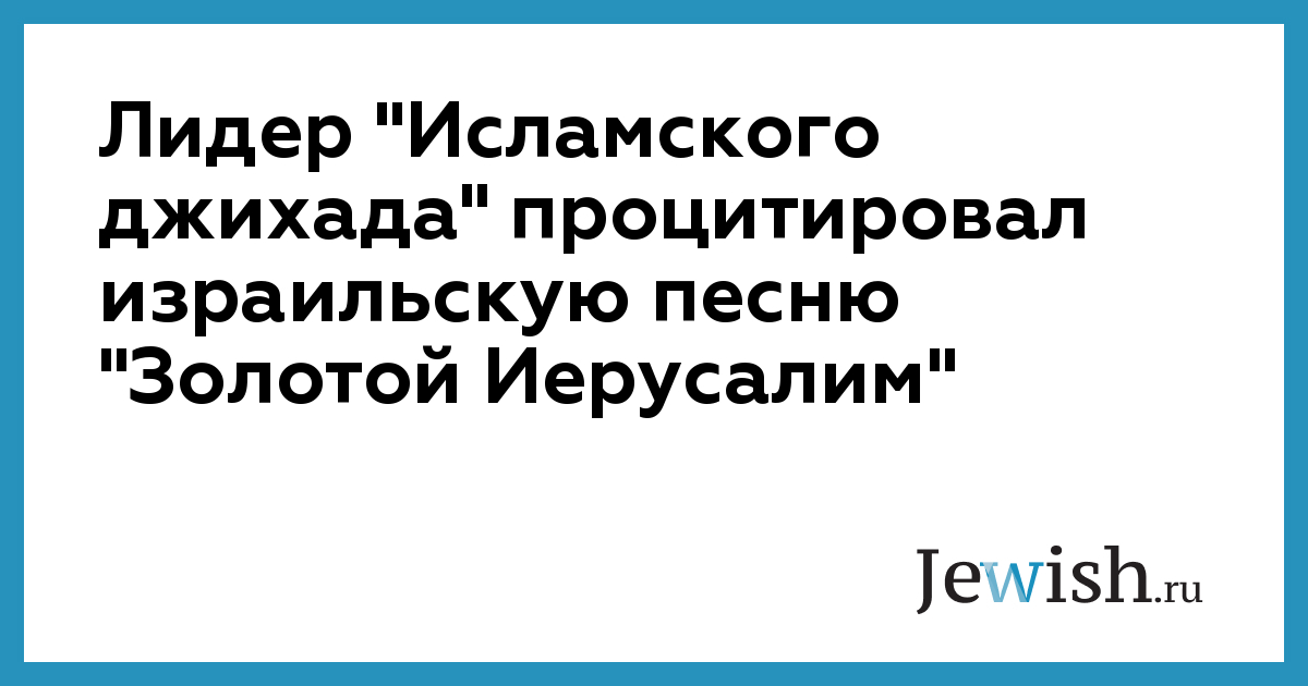 Лидер "Исламского джихада" процитировал израильскую песню "Золотой Иерусалим"