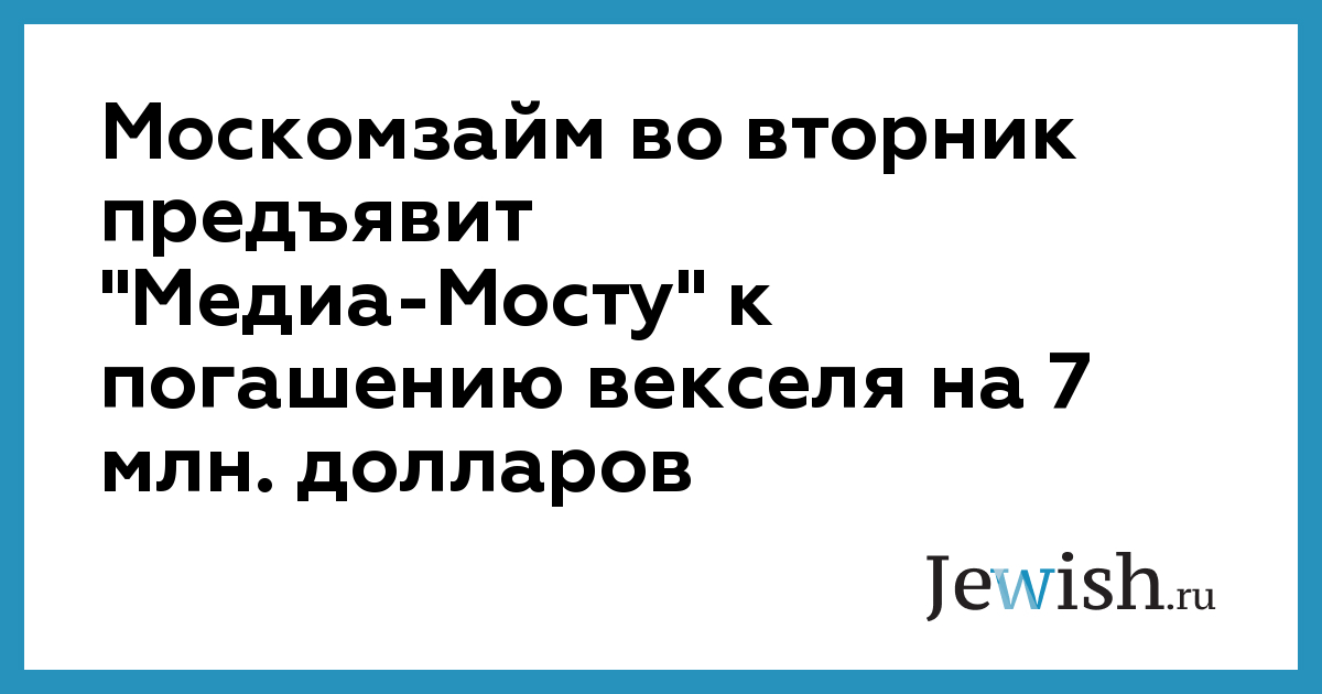 Москомзайм во вторник предъявит "Медиа-Мосту" к погашению векселя на 7 млн. долларов
