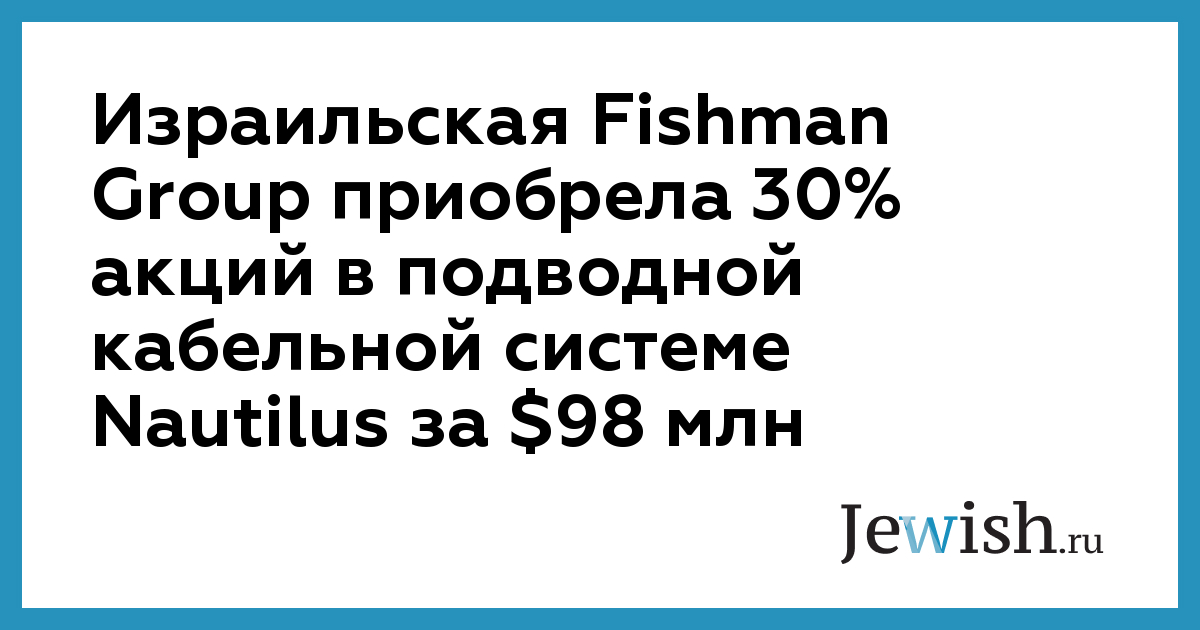 Израильская Fishman Group приобрела 30% акций в подводной кабельной системе Nautilus за $98 млн