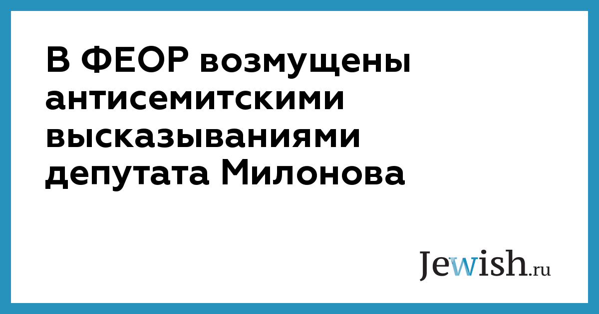 В Федерации еврейских общин России выражают недоумение по поводу антисемитского характера выступления депутата законодательного собрания Санкт-Петербурга от фракции «Единая Россия» Виталия Милонова.