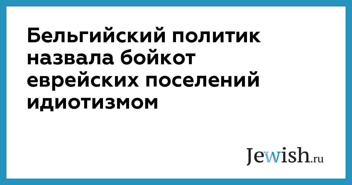 Бельгийский политик назвала бойкот еврейских поселений идиотизмом