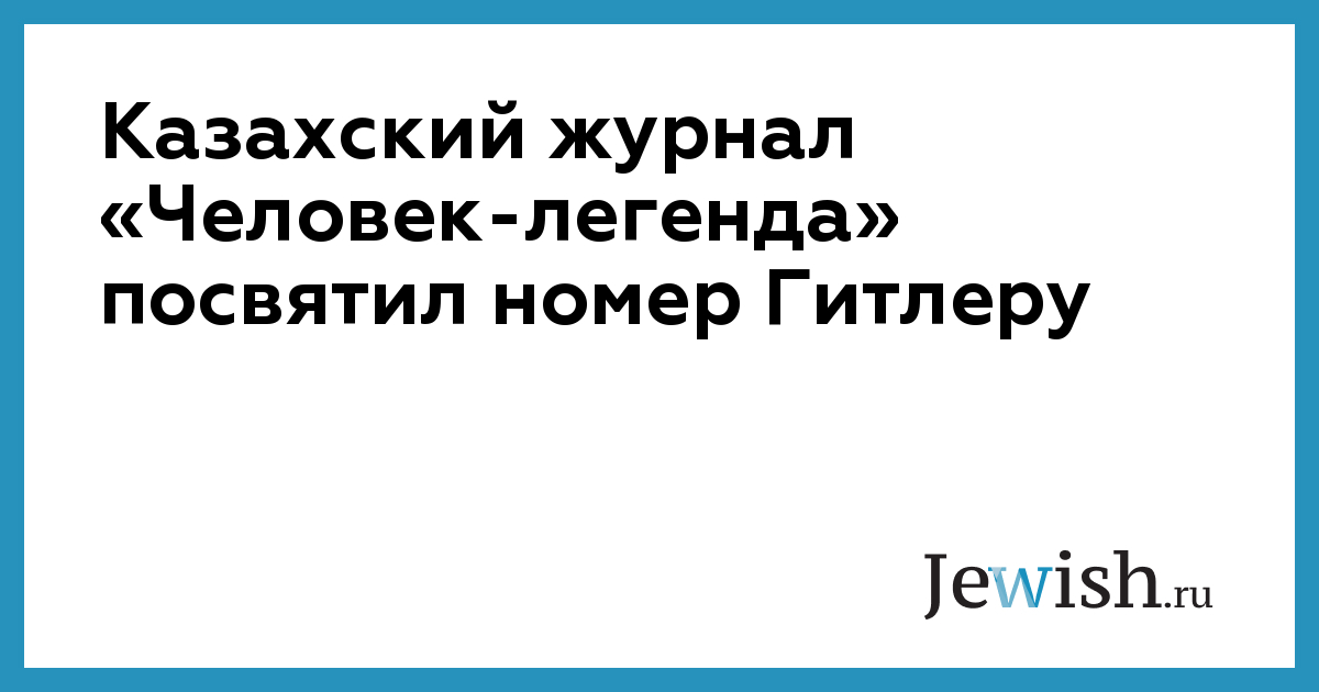 Казахский журнал «Человек-легенда» посвятил номер Гитлеру