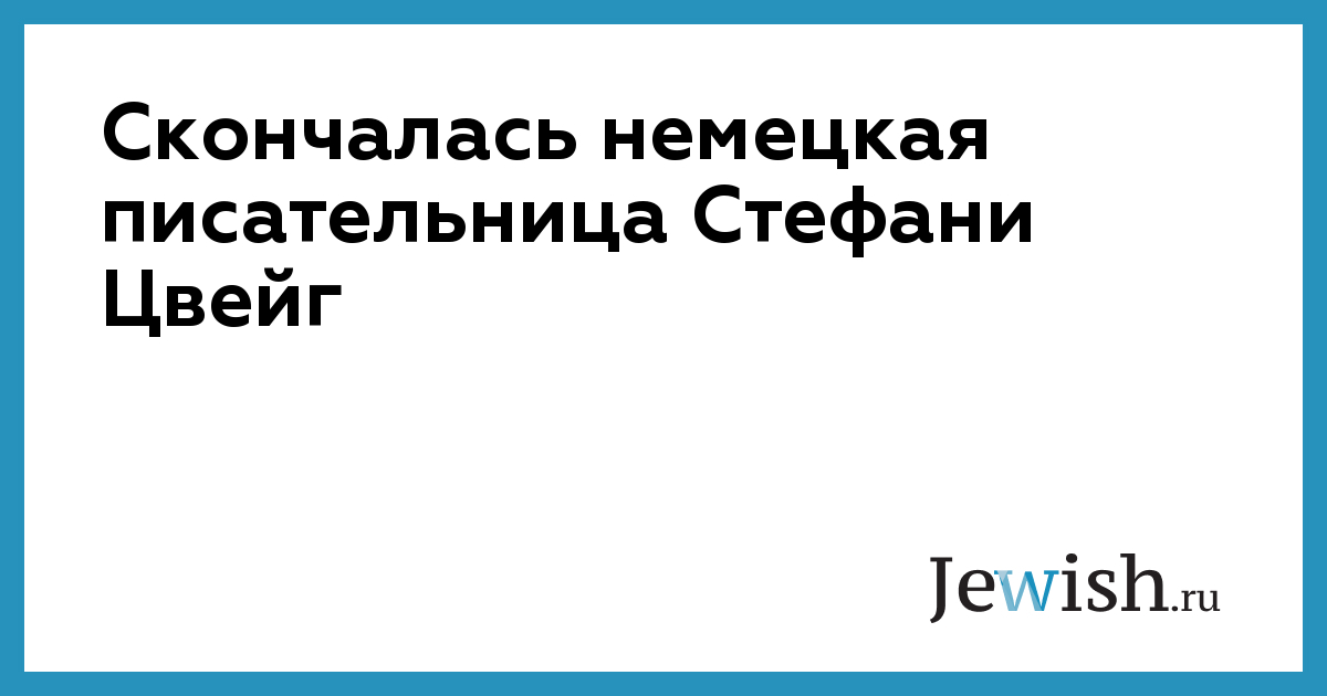 Как стало известно, 25 апреля немецкая писательница еврейского происхождения Стефани Цвейг умерла в возрасте 81 год. Причины смерти, а также дата похорон не сообщаются. Отметим, что последние годы литератор проживала в немецком городе Франкфурт-на-Майне.
