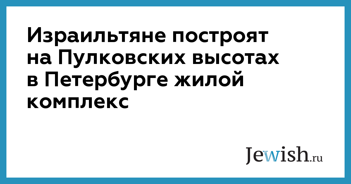 Израильтяне построят на Пулковских высотах в Петербурге жилой комплекс