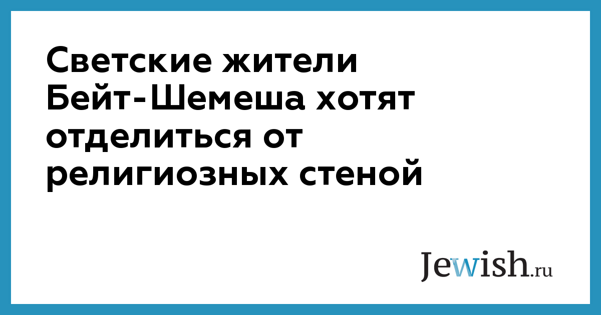 Светские жители Бейт-Шемеша хотят отделиться от религиозных стеной