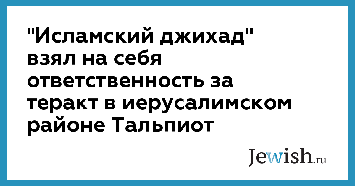 "Исламский джихад" взял на себя ответственность за теракт в иерусалимском районе Тальпиот
