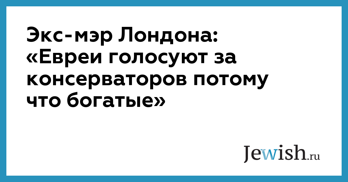 Экс-мэр Лондона: «Евреи голосуют за консерваторов потому что богатые»