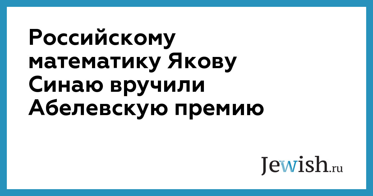 Размер Абелевской премии составляет €750 тыс. Престижная награда была присуждена российскому математику, работающему в США, в середине марта с формулировкой «за фундаментальный вклад в изучение динамических систем, эргодическую теорию и математическую физику».