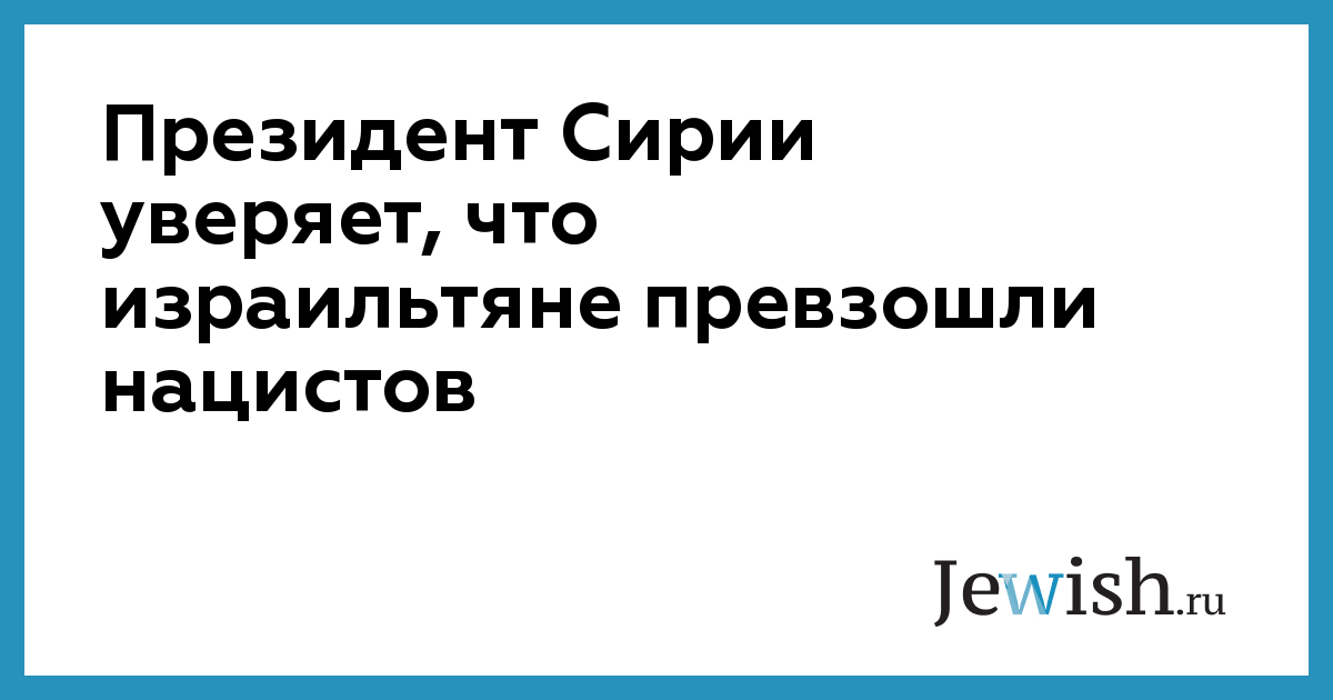Президент Сирии уверяет, что израильтяне превзошли нацистов