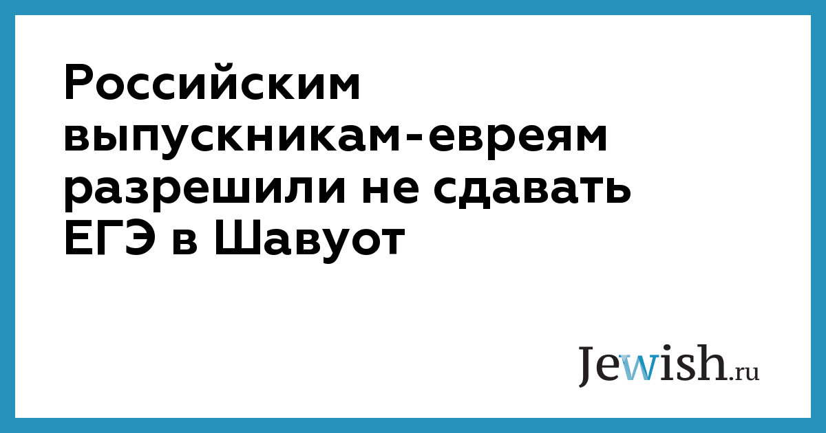 Российским выпускникам-евреям разрешили не сдавать ЕГЭ в Шавуот